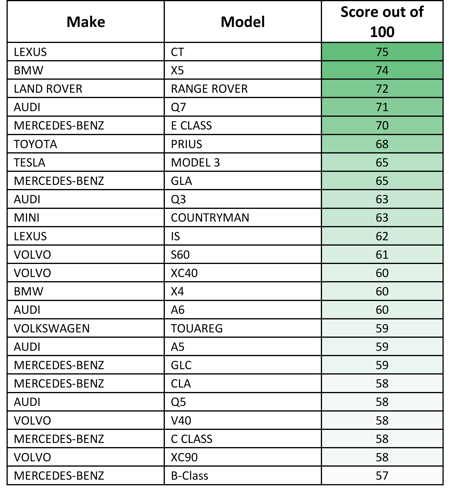 Topping the index was the Lexus CT, closely followed by the BMW X5 and Range Rover. In August the demand for low or zero-emission cars also rose with both Tesla Model 3 and Toyota Prius featuring for the first time in the index alongside the hybrid Lexus CT and IS.
